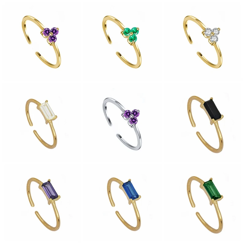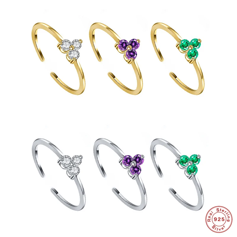 Женское кольцо из стерлингового серебра 925 пробы с цветными тремя цирконами, регулируемое изменяемое, модное роскошное кольцо с кристаллами CZ, свадебные украшения