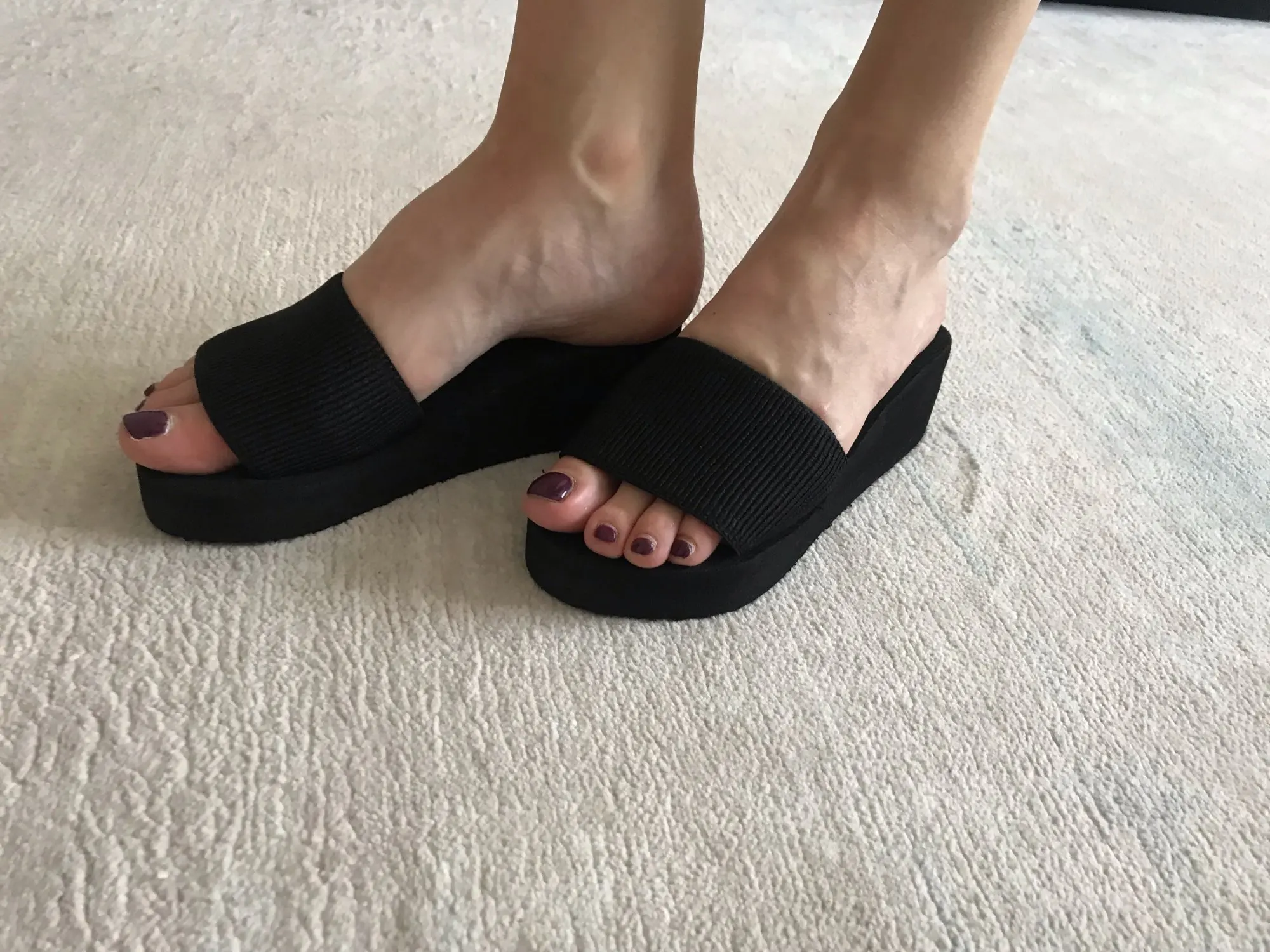 Быстрая доставка, хорошие тапочки на платформе, но надо брать на 1-2 размера больше. У меня 36 с половиной, взяла 37, впритык