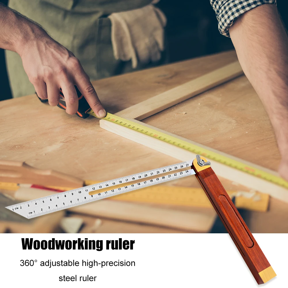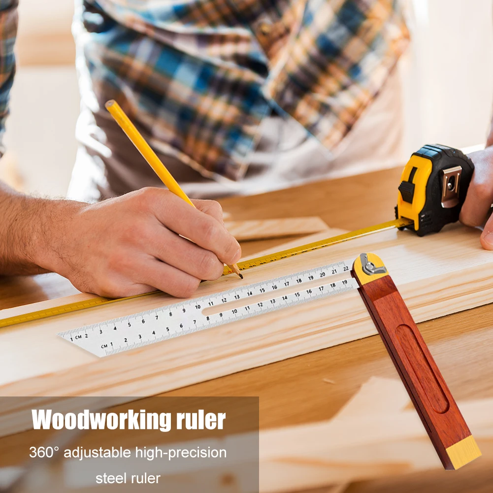 Деревянные маркировочные Угловые линейки измерительные тройные квадратные РАЗДВИЖНЫЕ Т-образные скобы с деревянной ручкой измерительные инструменты вращающаяся Инженерная линейка для деревообработки