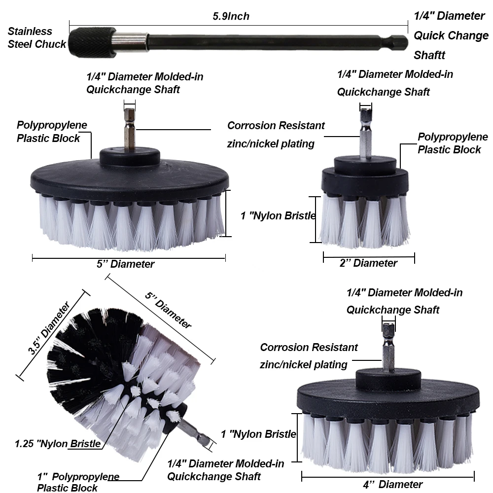 • Белые кисти для сверления выполнены с мягкой нейлоновой щетиной и не царапают поверхность изделия.