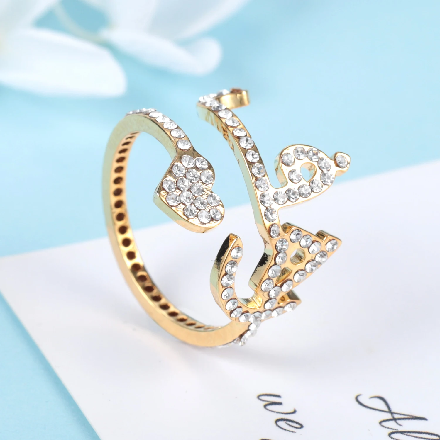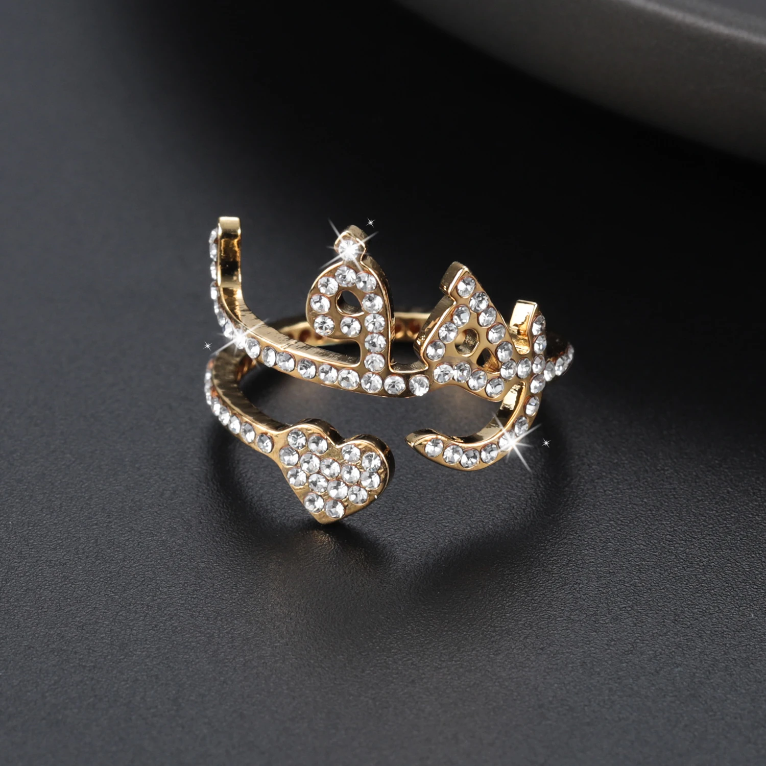 Персонализированные арабский кольца с буквами золото Нержавеющаясталь пользовательские льдом имя кольцо для Для женщин сердце босоножки на высоком каблуке BlingBling, мусульманские украшения подарки
