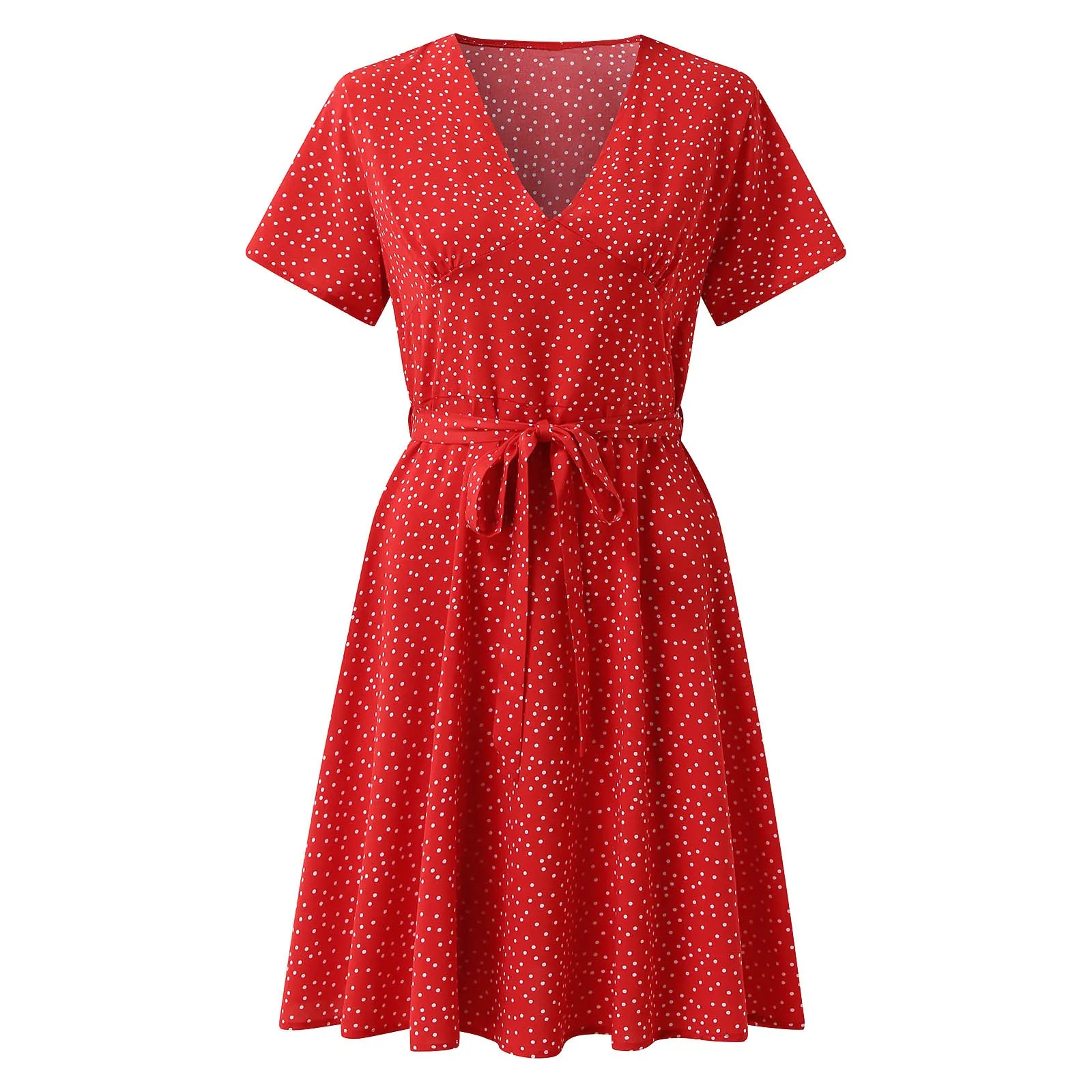 Женское Повседневное платье в горошек с коротким рукавом и v-образным вырезом