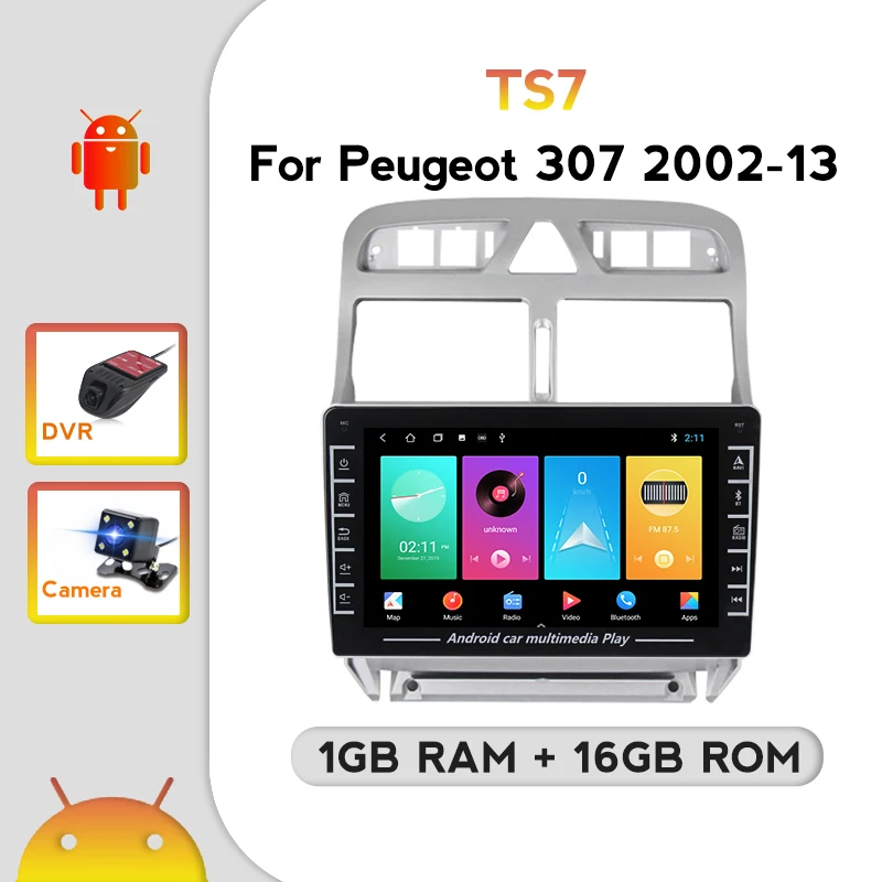 Автомобильный GPS-навигатор, 1 Гб + 16 ГБ, 2din, Android 8,1, для Peugeot 307, 307CC, 307SW, 2002-2013, автомобильный DVD-радиоприемник, BT-плеер, мультимедиа, Wi-Fi, CARPLAY