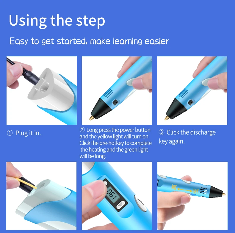 Pen ручка второго поколения может использовать ABS и PLA расходные материалы, но PLA бесцветная, без запаха, Нетоксичная, здоровая и экологически чистая;