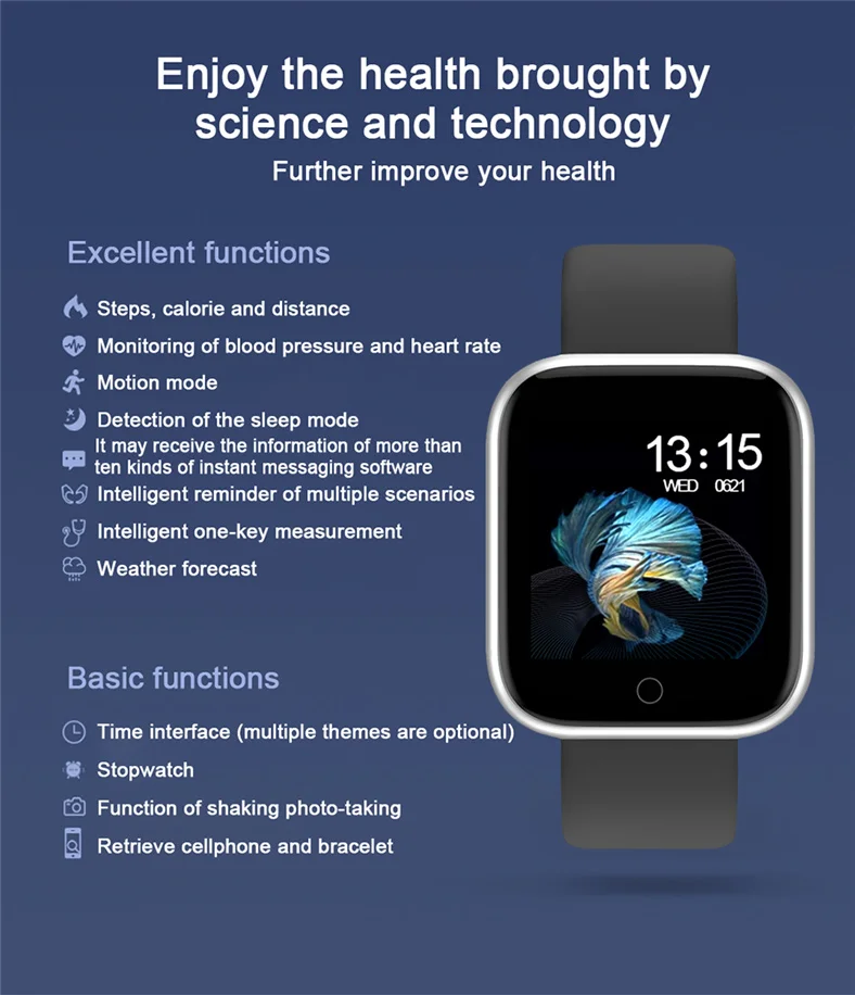 Смарт-часы T80 с Bluetooth, пульсометром, монитором сна и тонометром