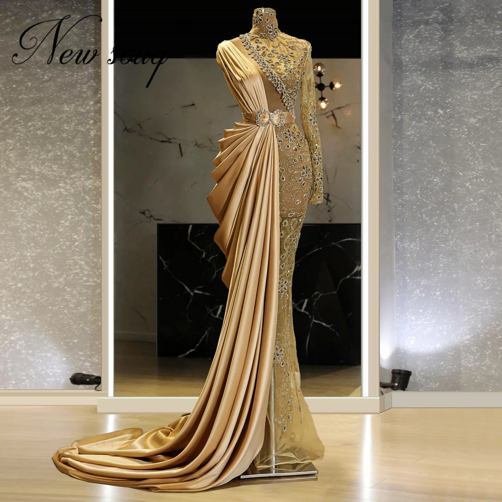 Женское вечернее платье с бусинами, длинное платье цвета шампанского с юбкой годе, ручной работы, для выпускного вечера, вечеринки, 2021