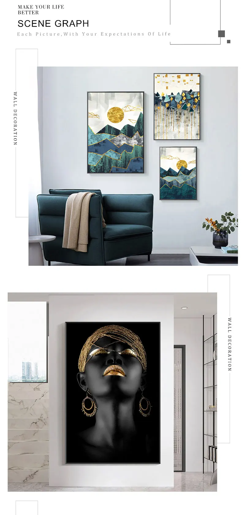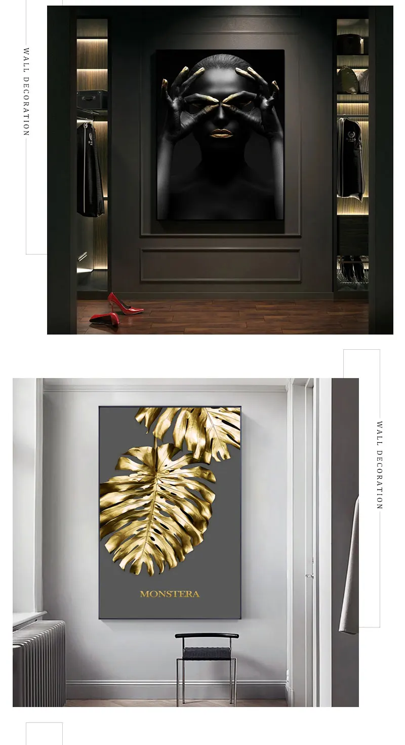 Плакат черная женщина с серебряной фольгой, холст, современные карт...
