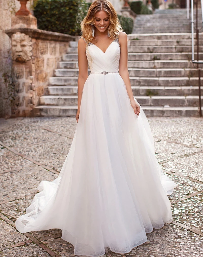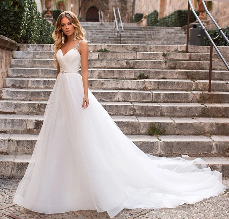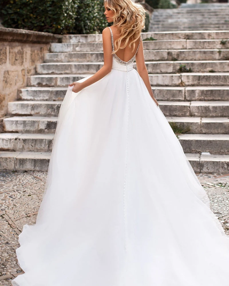 На тонких бретелях, без рукавов, трапециевидной формы стразы Свадебные платья Vestido de Noiva спинки свадебное платье из органзы