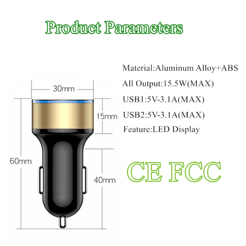 Автомобильное зарядное устройство с двумя USB-портами, 5 В, 3 А