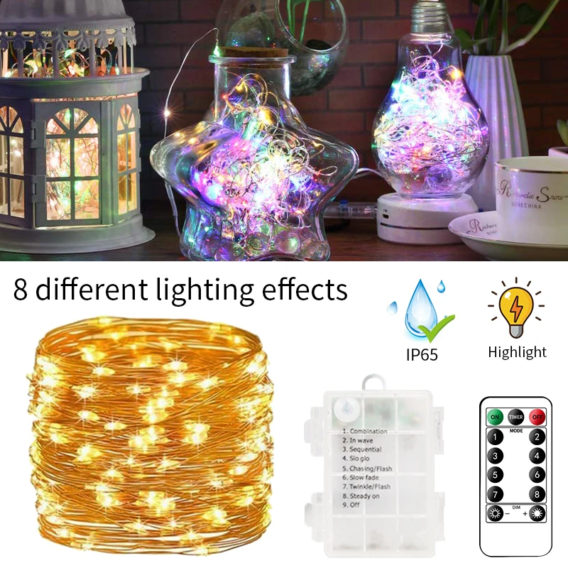 Праздничный уличный светильник-гирлянда с дистанционным управлением на 10 м и батареей, USB-лампа, садовые светильники, светодиодный светильник для вечерние ринки, Рождественское украшение