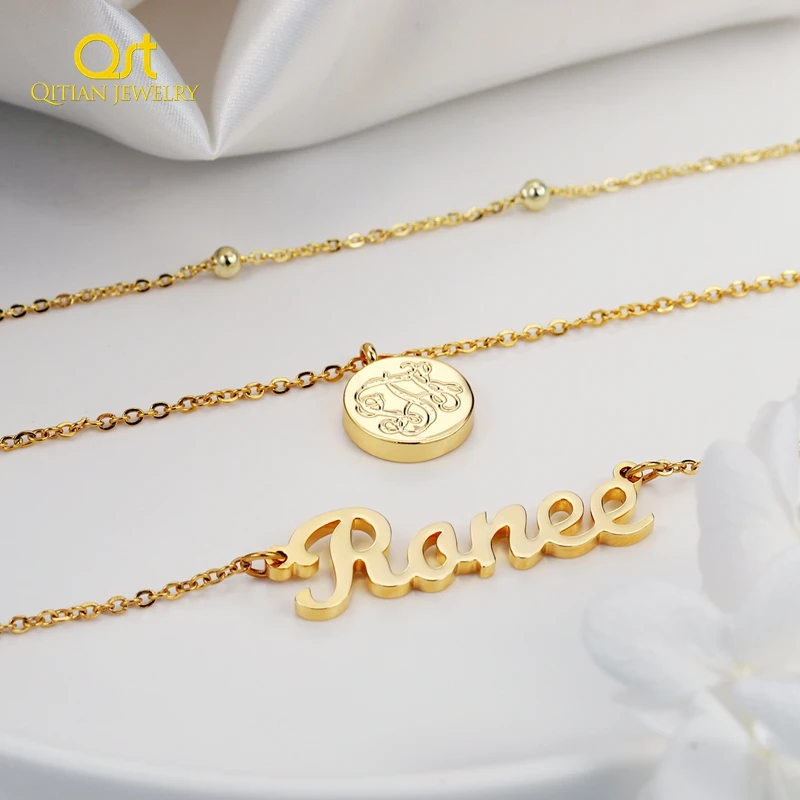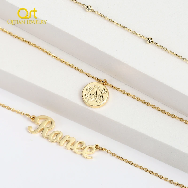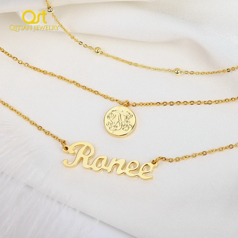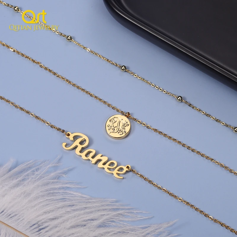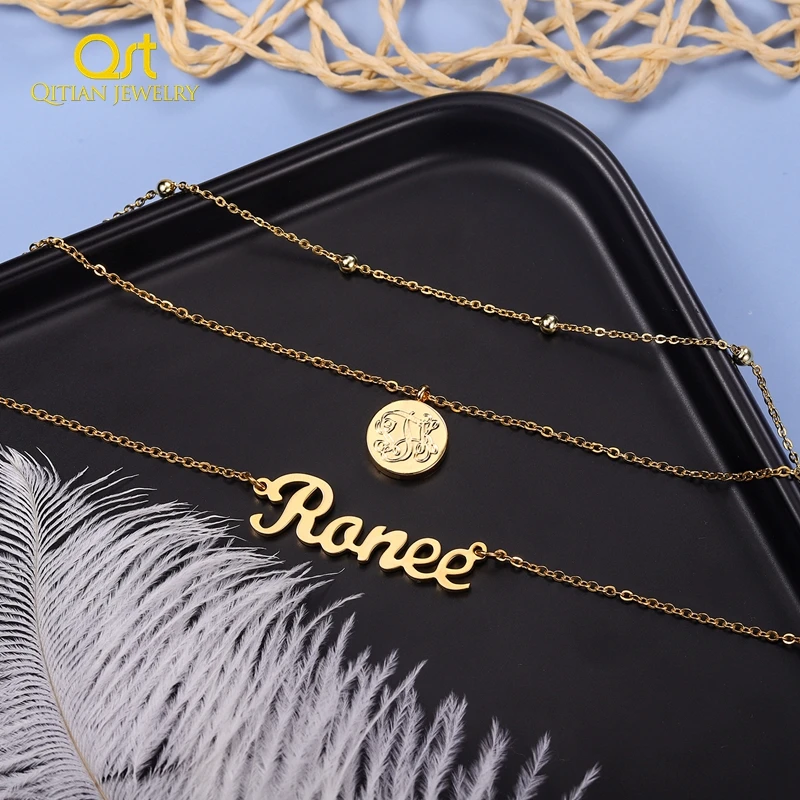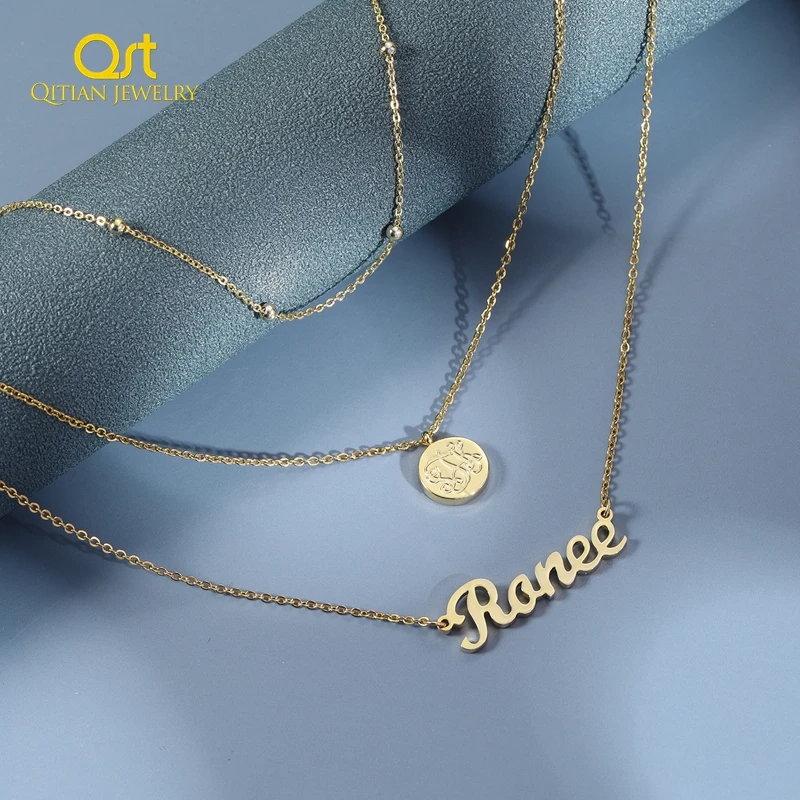 Ожерелье покрытое золотом индивидуальная именная табличка ожерелья на заказ индивидуальная из нержавеющей стали ювелирные изделия звено цепи Qitian