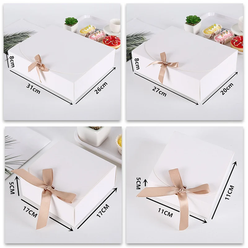 Подарочная коробка из крафтовой бумаги с бантом, белая коробка для выпечки, Рождественский Декор, картонные коробки для свадебного подарка 2021, товары для вечерние