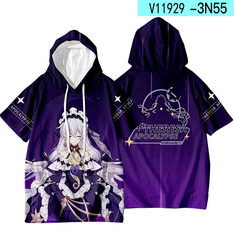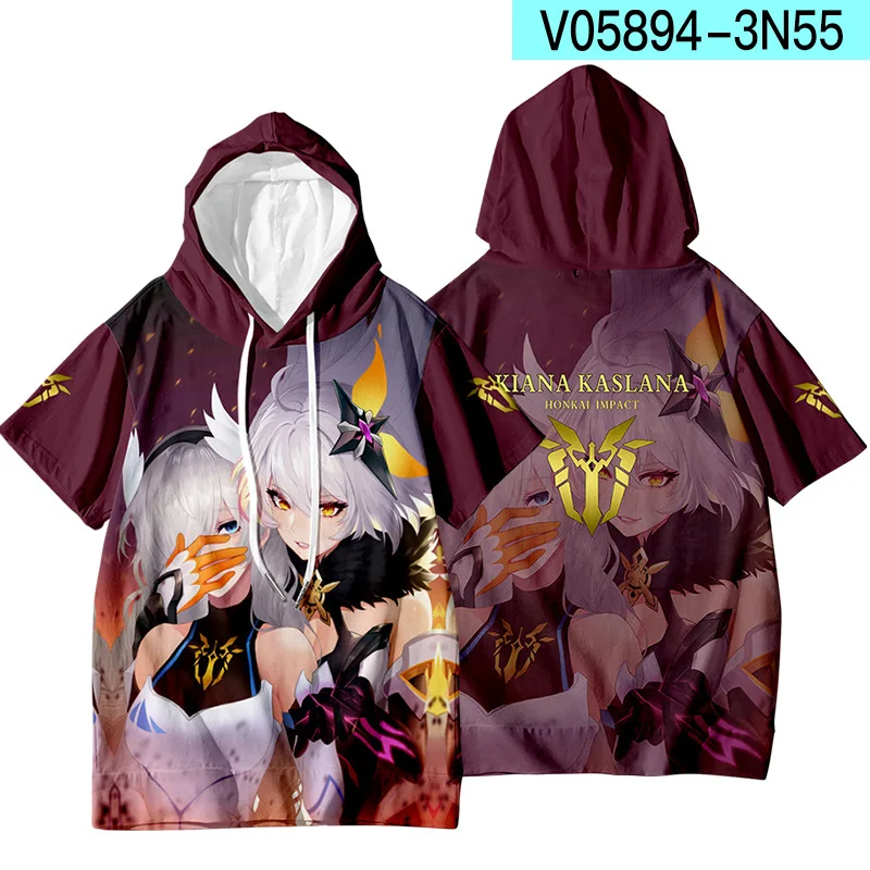Аниме Honkai Impact 3rd 3D с принтом летняя футболка с короткими рукавами и капюшоном футболка смешные футболки Harajuku топы карнавальный костюм