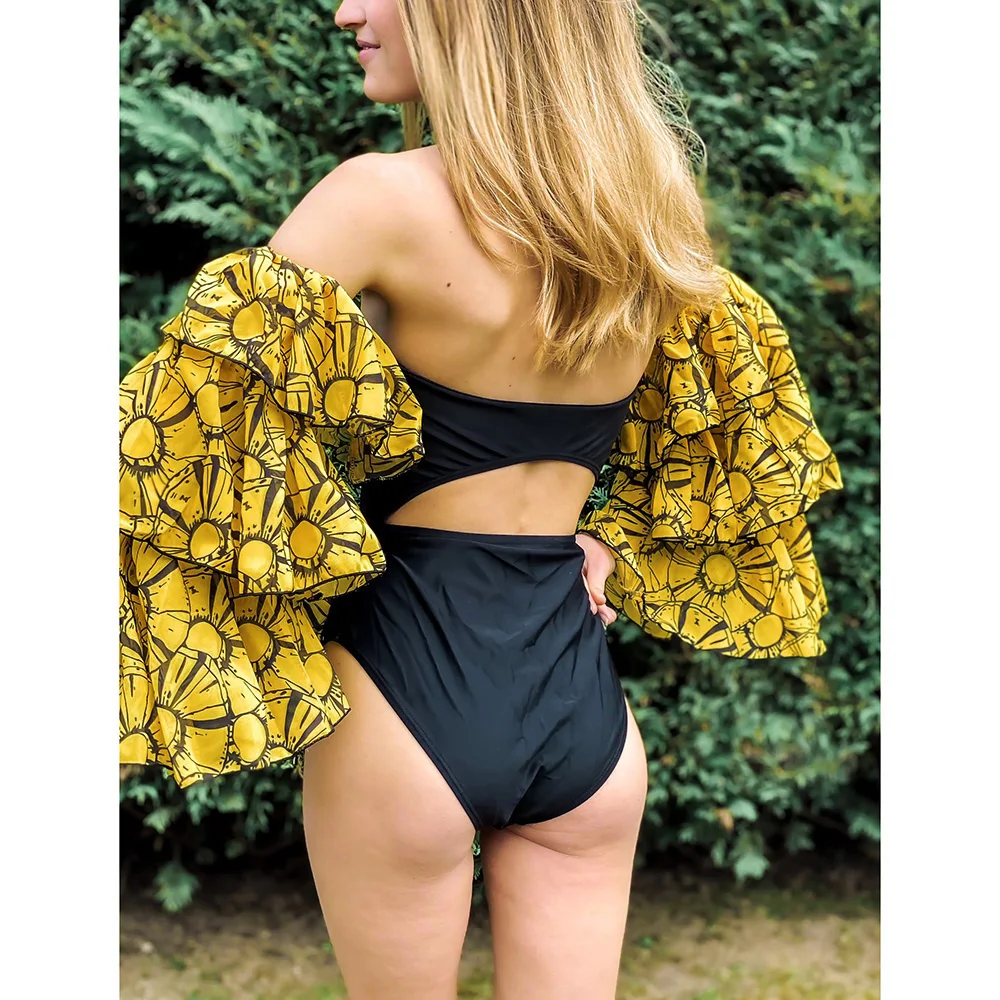 Женский слитный купальник, купальный костюм с расклешенными рукавам...