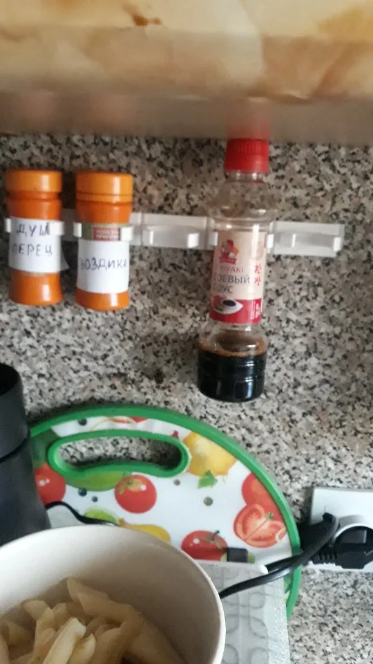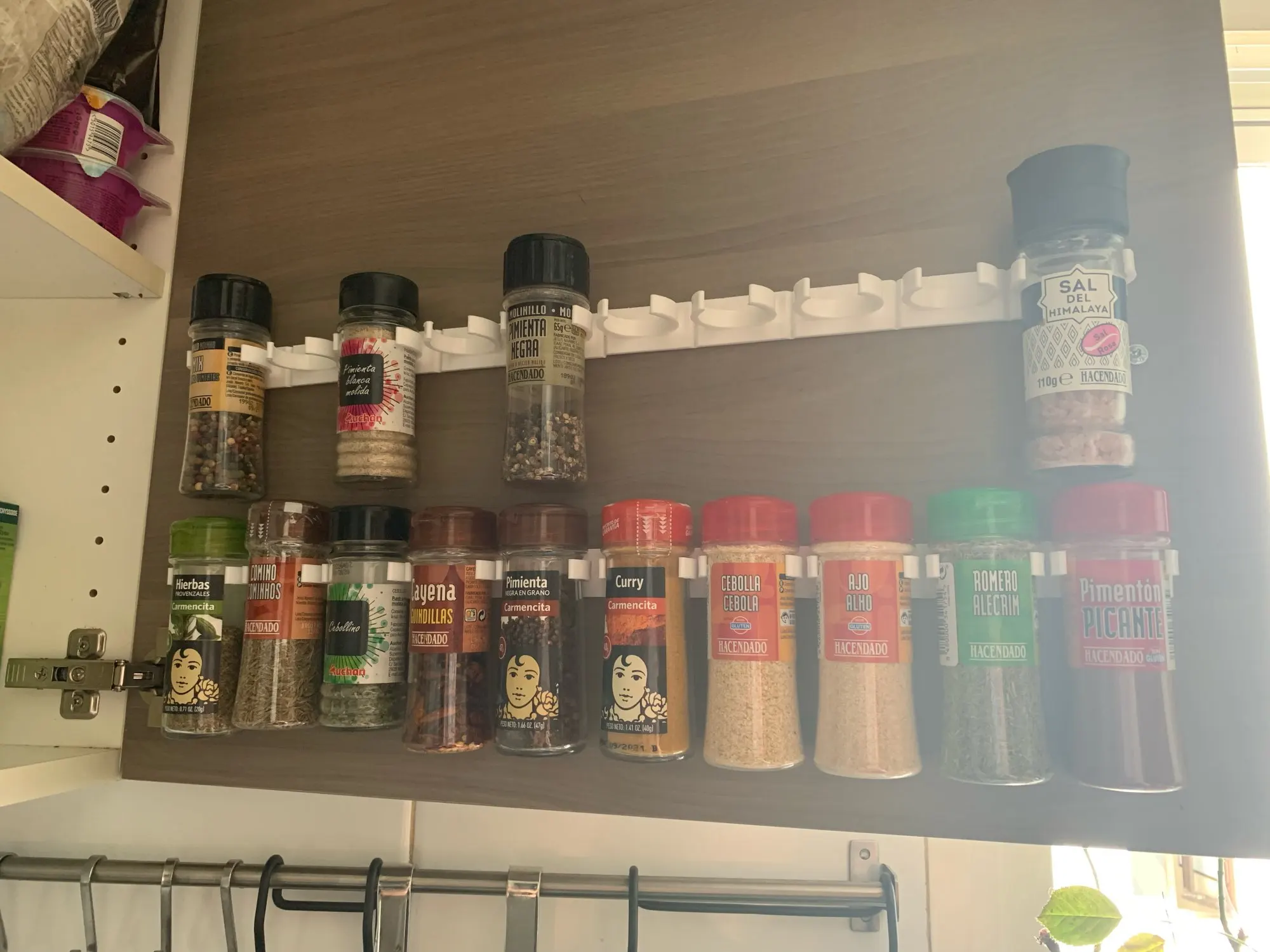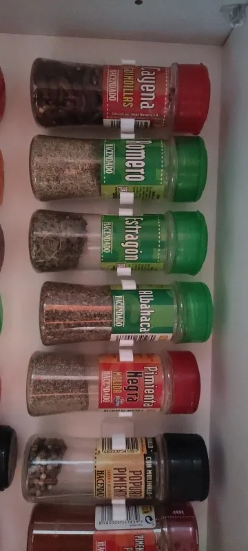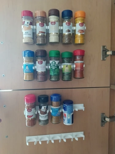 Хорошая идея, но плохая производительность, пластик, соответствующий продукту, очень плохого качества, и, поскольку он не плоский и имеет недостатки, он легко отрывается от клейкой полосы, после 4 дней использования он упал с бутылками специй. Просто хорошая идея, но очень плохо выполненная.