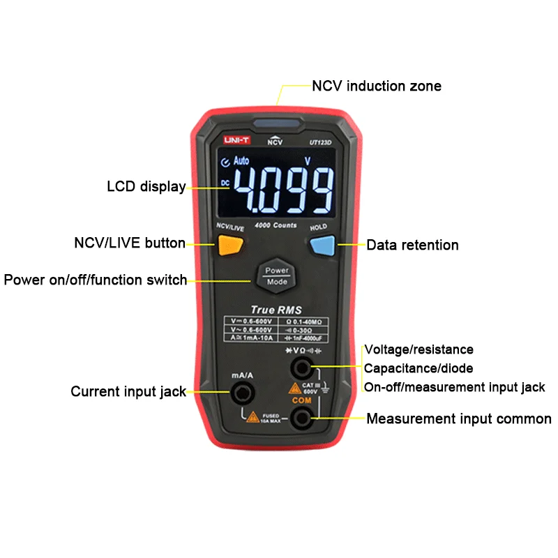 Умный Автоматический цифровой мультиметр UNI-T UT123D, тестер емкости, сопротивления, переменногопостоянного тока, RMS