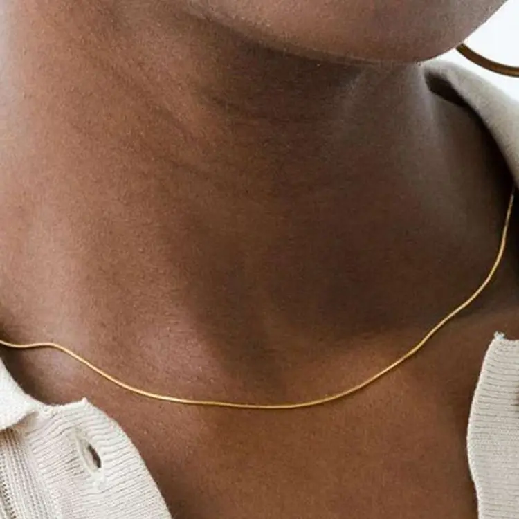 Золотой цвет Женская цепочка в виде змеи ожерелье 1 мм ультра тонки...