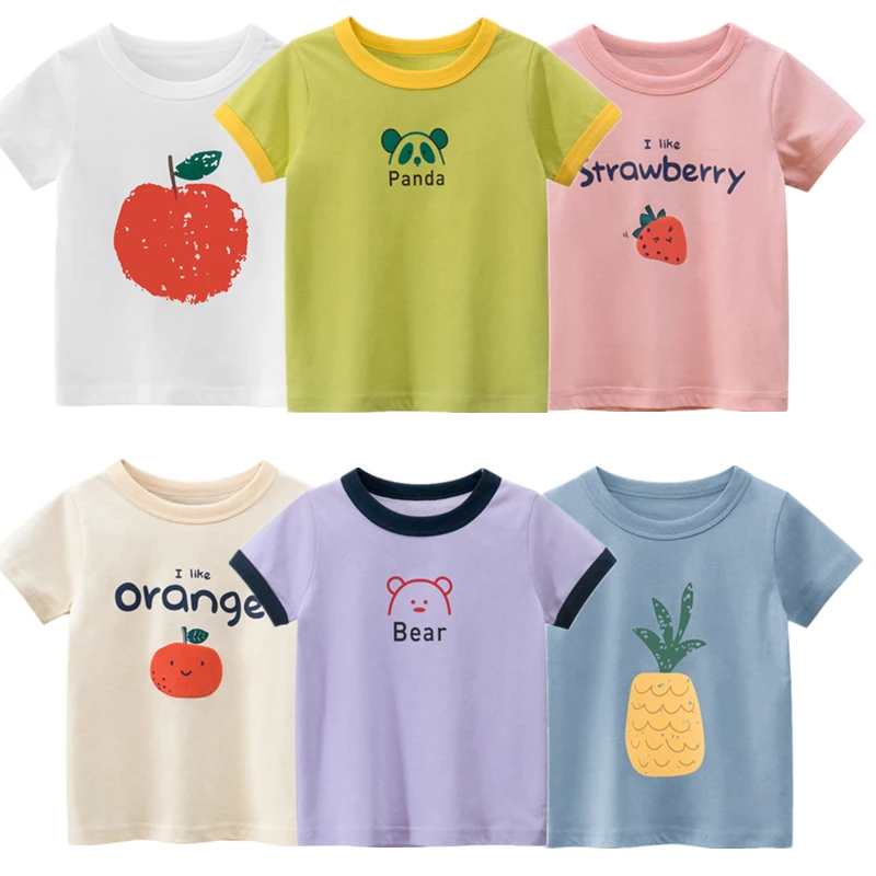 Летние детские футболки 2021, топы с коротким рукавом для девочек, футболки, повседневная детская одежда, футболки для маленьких мальчиков и девочек с изображением фруктов, Топ