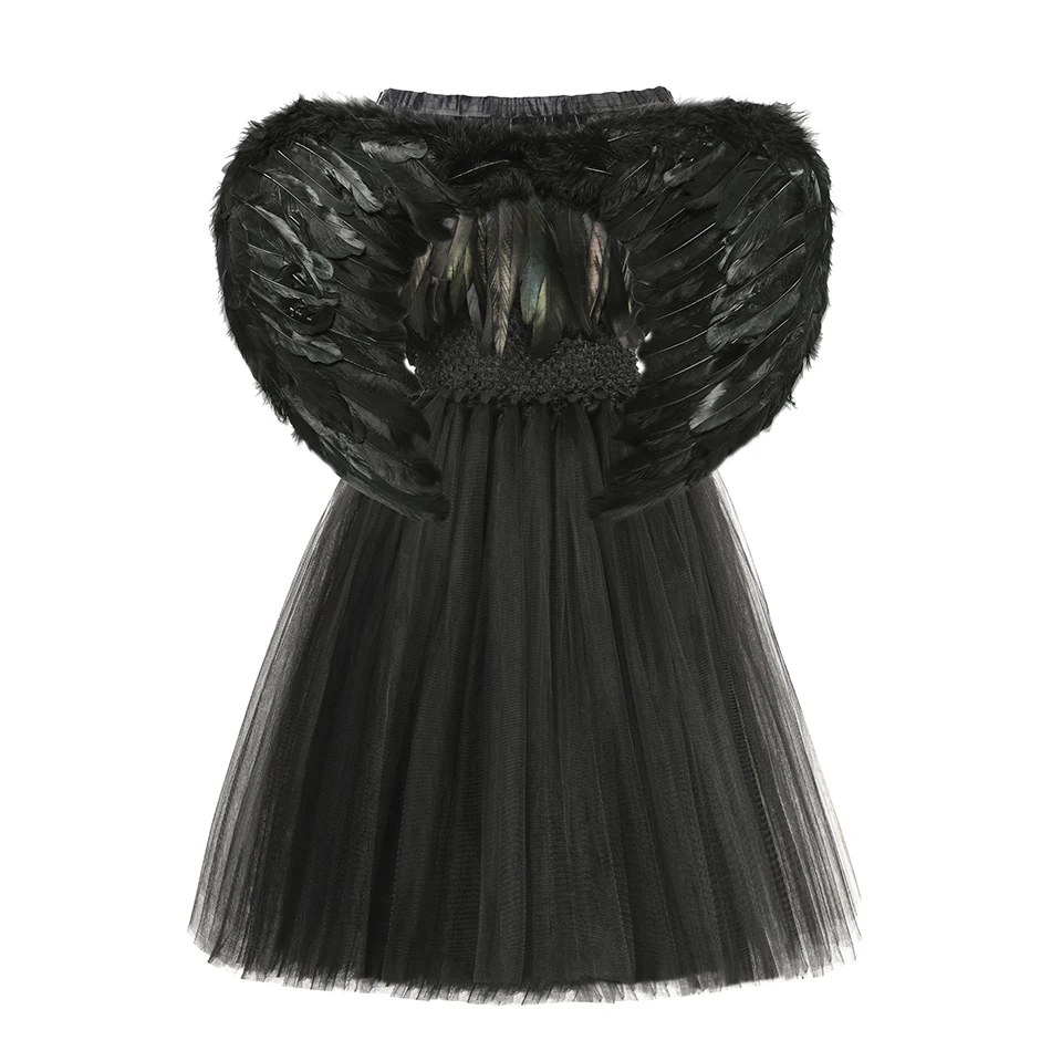 Платье-пачка для девочек, с рогами, крыльями, злой королевой, нарядные платья для вечевечерние, детское платье на Хэллоуин, костюм ведьмы для косплея