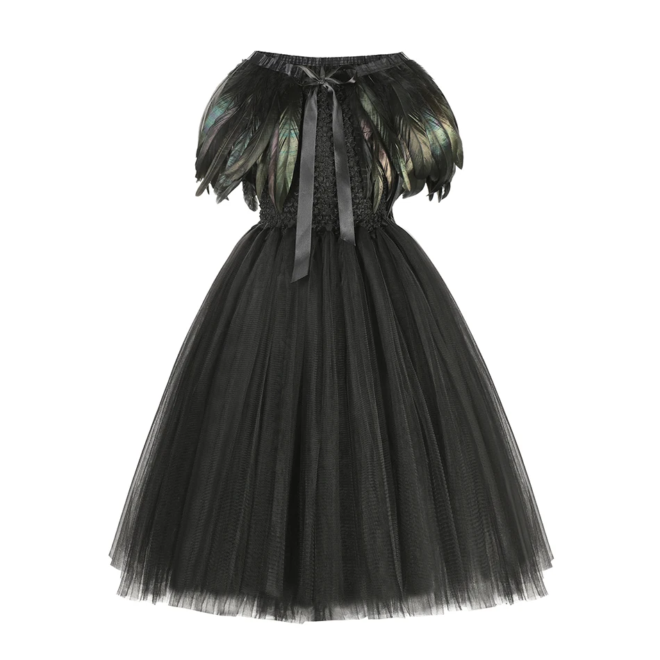 Для девочек Малефисента платье-пачка платье с рогами крылья злого королевы для девочек модное платье без рукавов вечерние платья детский костюм на Хеллоуин; Костюм ведьмы для косплея платье