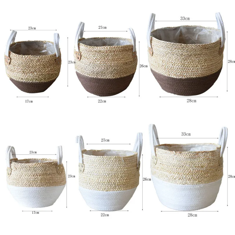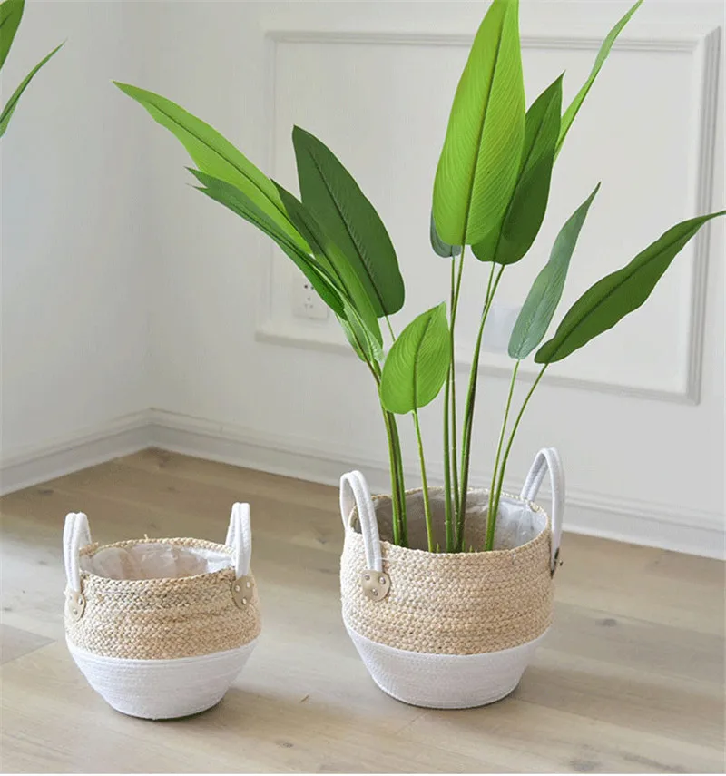 Соломенный цветочный горшок из ротанга, плетеная корзина для хранения-органайзер для игрушек, корзины для белья, Плетеный подвесной садовый цветочный горшок, корзина, кашпо