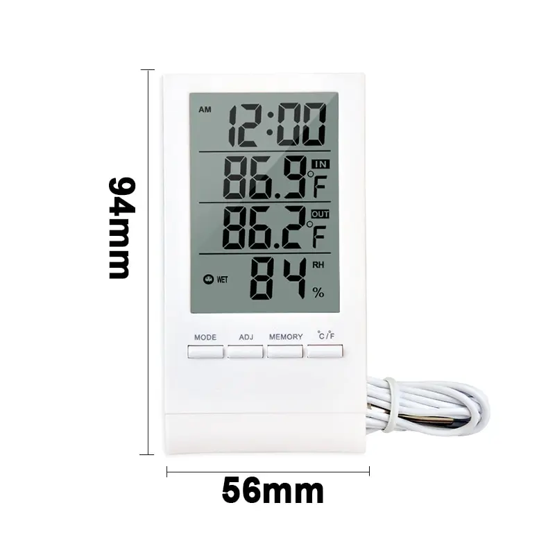 Цвет: белый/черныйМатериал: пластикРазмер: 5,6*1,3*9,4 смТемпературное Разрешение: 0,1 ℃Диапазон измерения температуры: -50 ° + 70 °Батарея: батарейка ААА (не входит в комплект)