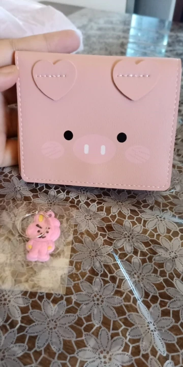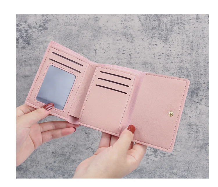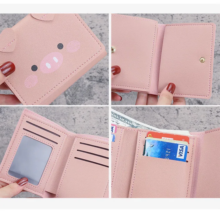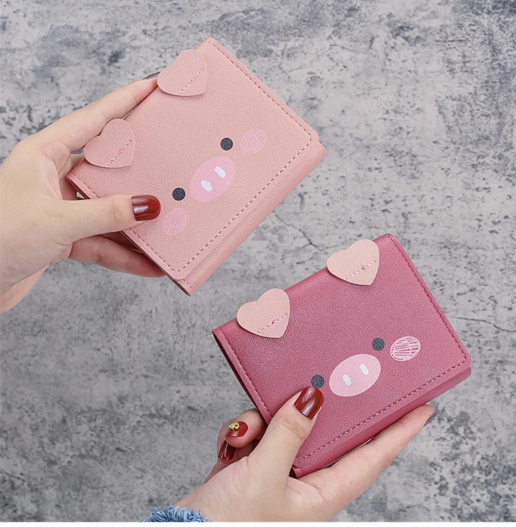 Однотонный короткий кошелек тройного сложения из искусственной кожи с изображением поросенка, кошелек для удостоверения личности и кредитных карт, новинка 2021, милый маленький кошелек из красной кожи для женщин