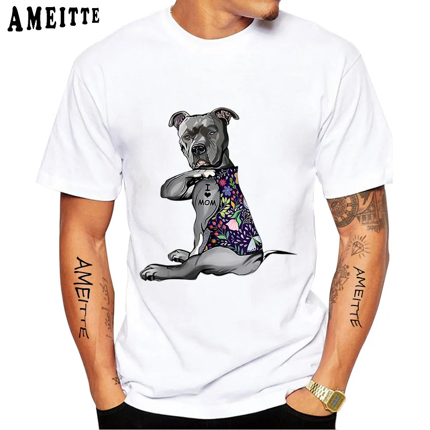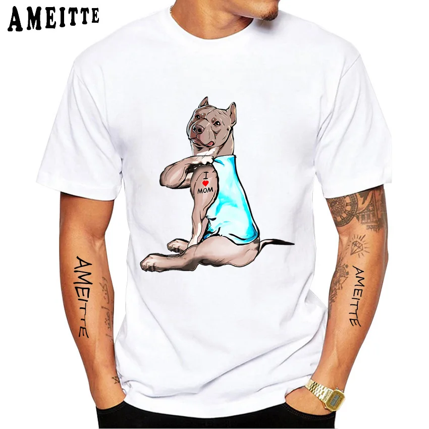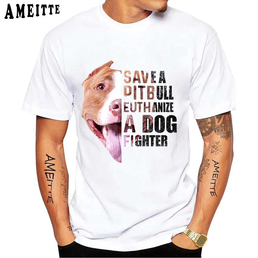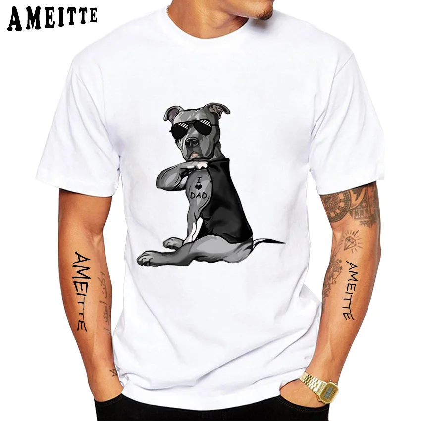 Футболка мужская с забавным принтом собаки питбуля, модная повседневная одежда с коротким рукавом в стиле хип-хоп для влюбленных, белая, на лето