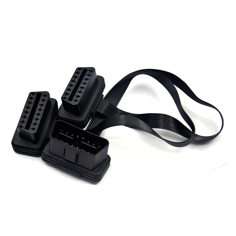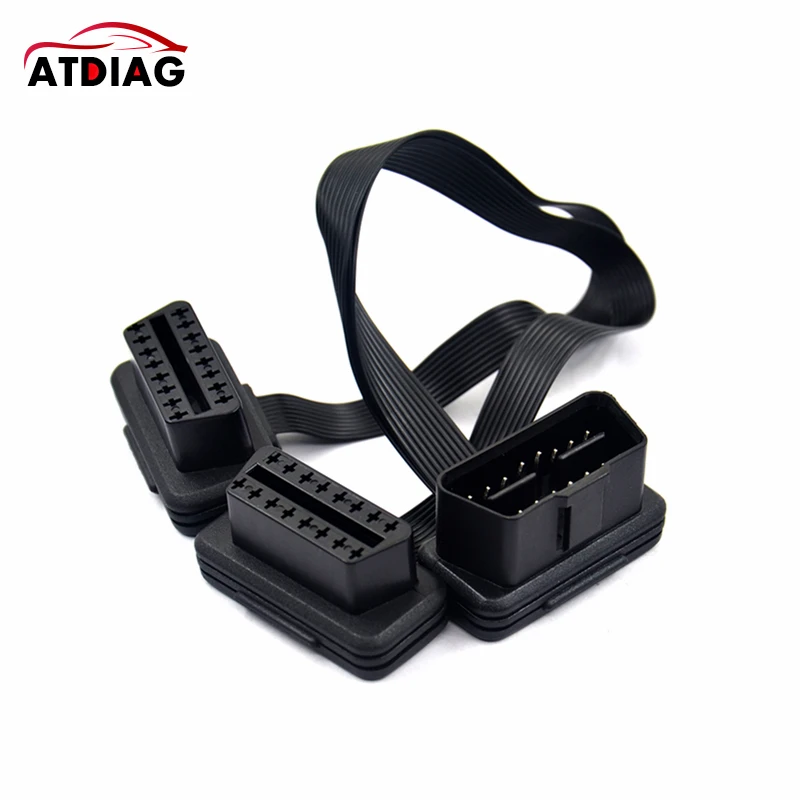 Плоский + тонкий 16-контактный удлинитель OBD 2 OBD2 16-контактный ELM327 штекер-Двойной Женский Y-разветвитель локоть OBDII Удлинительный соединительный кабель