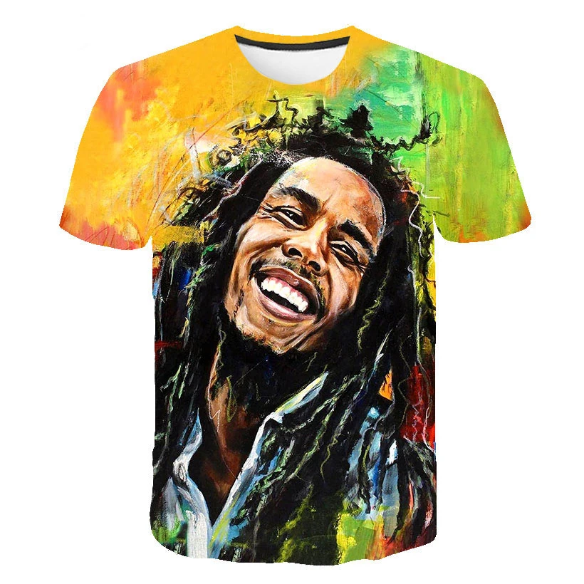 Летняя Новинка 2021, Мужская музыкальная футболка с 3D принтом, футболка с коротким рукавом, с изображением красивой гитары, регги, оригинатор Боба Марли, стильная металлическая футболка