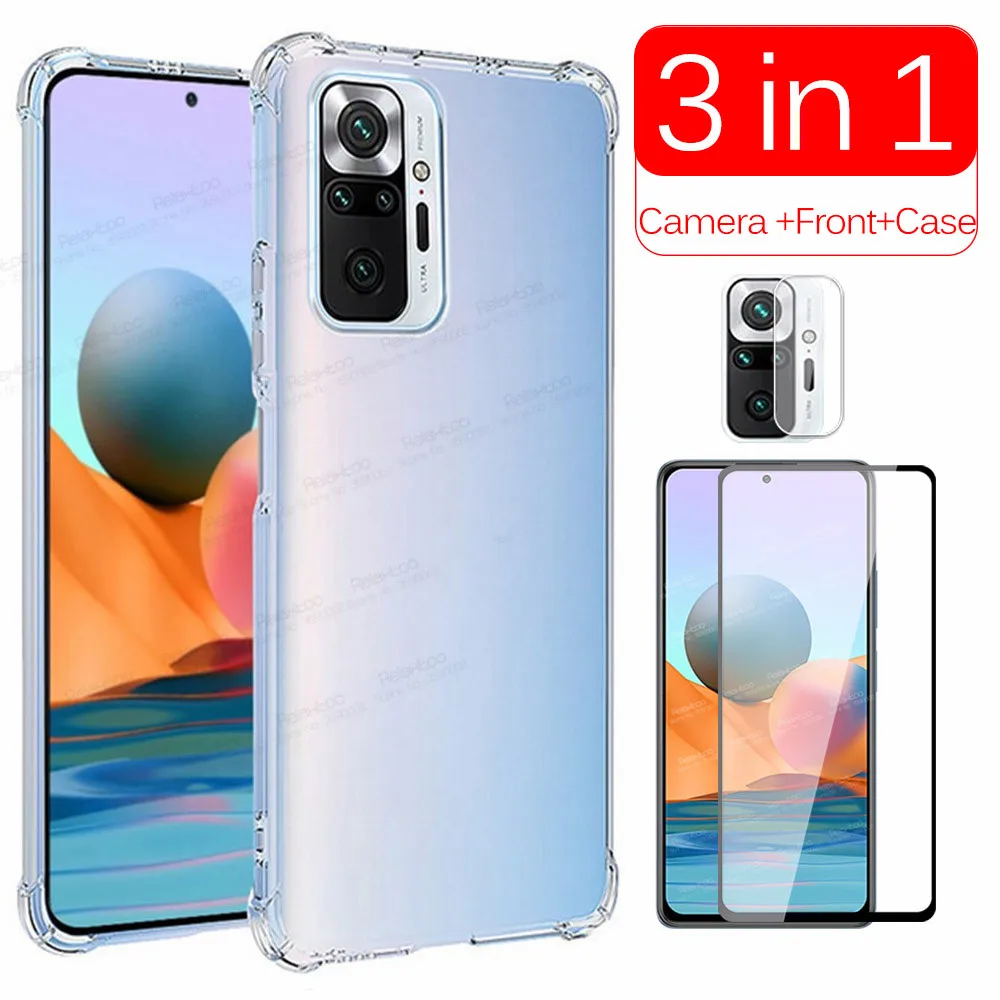3 в 1 Защитное стекло для передней камеры для Xiaomi Redmi Note 10 Pro Чехол Xiomi Redme Note10 10Pro прозрачный противоударный чехол для телефона