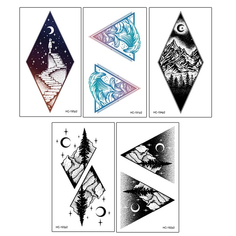 Временные водостойкие татуировки на Хэллоуин, наклейки с имитацией экологии, планеты, океана, кокосового дерева, Луны, гор