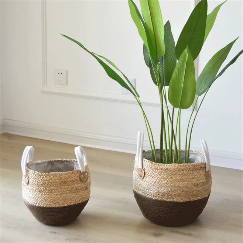 Прочный Настольный ящик для хранения плетеная корзина для хранения, ящик для хранения игрушек и закусок с ручкой, корзины для цветов, плетеная корзина, украшение