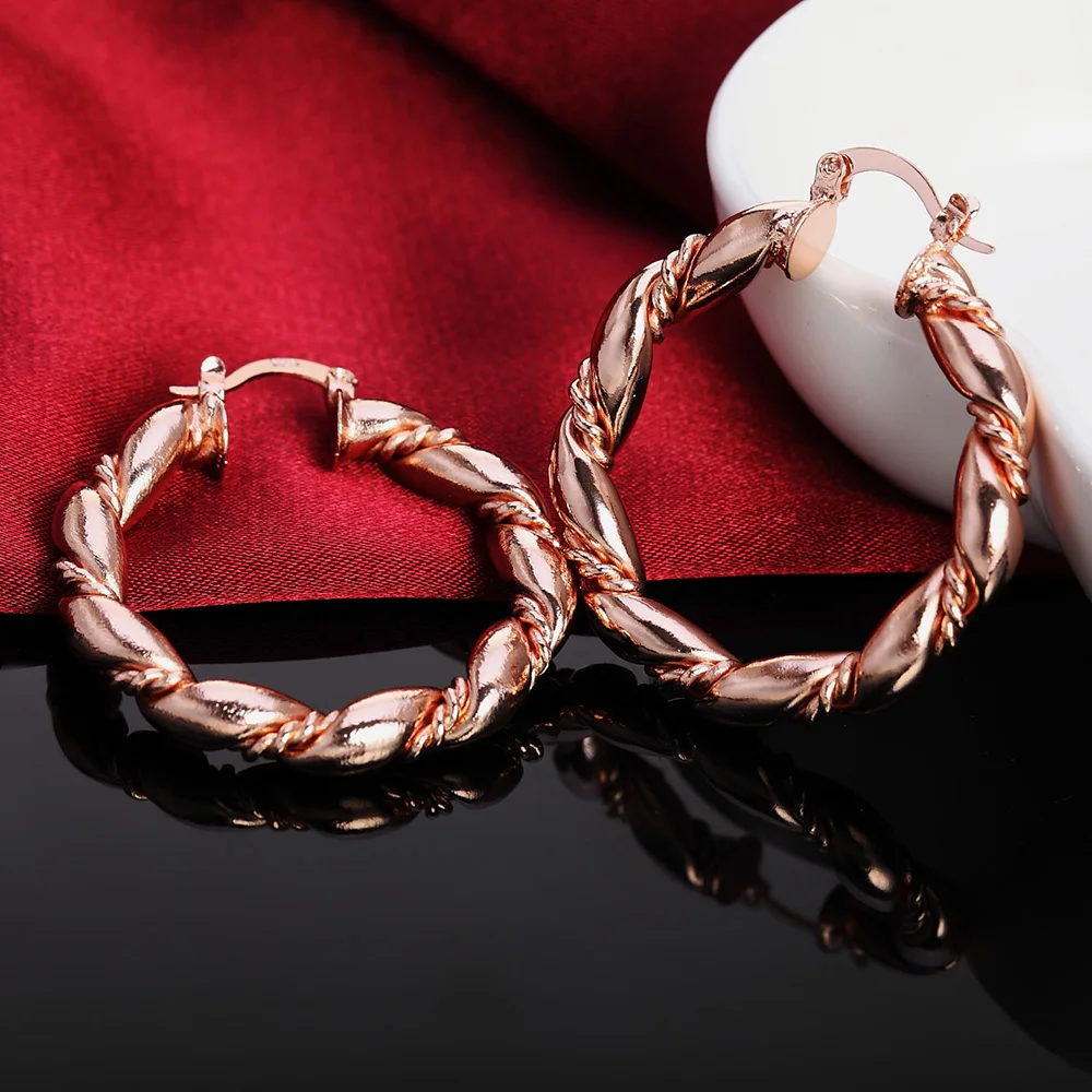 925 стерлингового серебра витая веревка петли 38 мм круглые серьги-кольца 18K Золотые серьги для женщин модные вечерние Свадебные обручальные кольца вечерние драгоценности