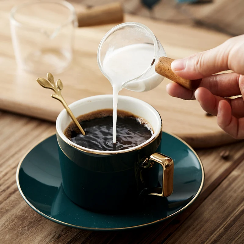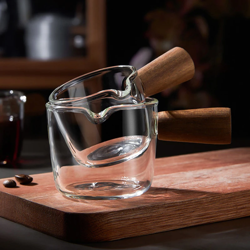 Стеклянная чашка для молока, 50100 мл, мини-кувшин с деревянной руч...