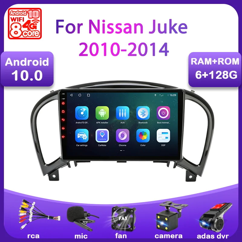 Автомагнитола на Android 10 для Nissan Juke YF15 2010 2011 - 2014 мультимедийный видеоплеер 2 Din GPS-навигация Carplay RDS IPS WiFi DVD