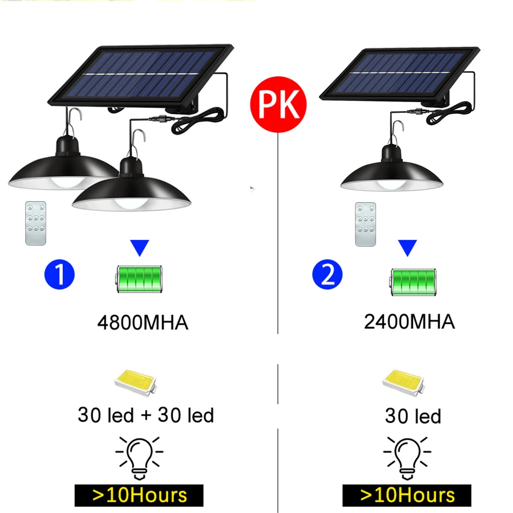 Подвесной светильник на солнечной батарее с одной или двумя головками, наружная Солнечная лампа для помещений, подвесной светильник chandliser для безопасности, для кемпинга, дома, сада, двора, регулируемый светильник, дополнительный пульт дистанционного управления и таймер
