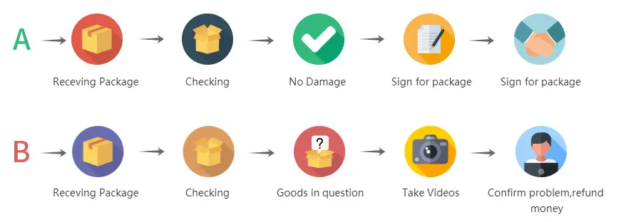 • Пожалуйста, проверьте товар при доставке, если он поврежден, пожалуйста, примите его и немедленно свяжитесь с нами. Мы сделаем подтверждение и повторно отправим вам новый.