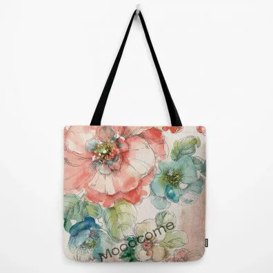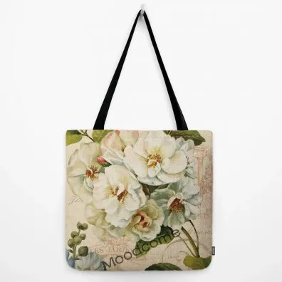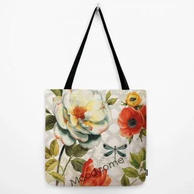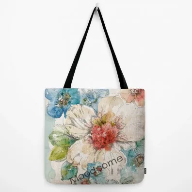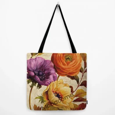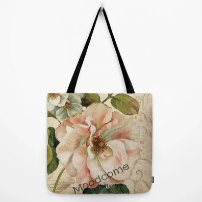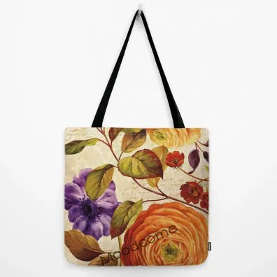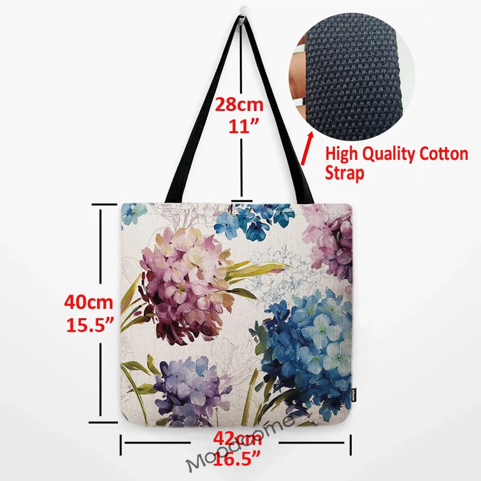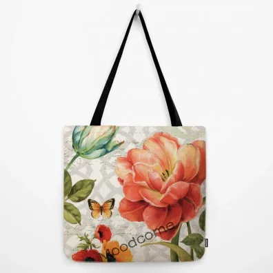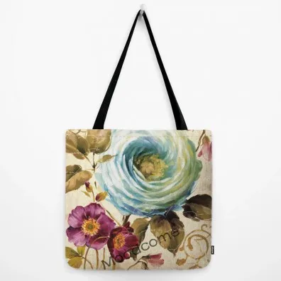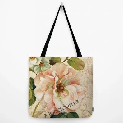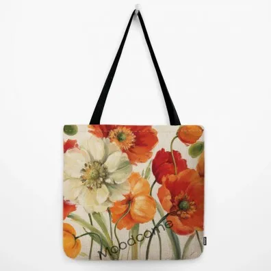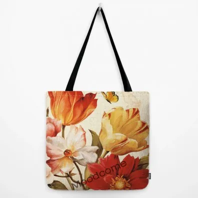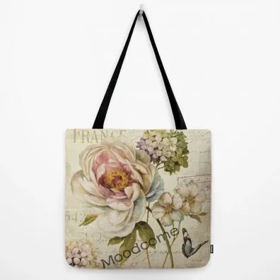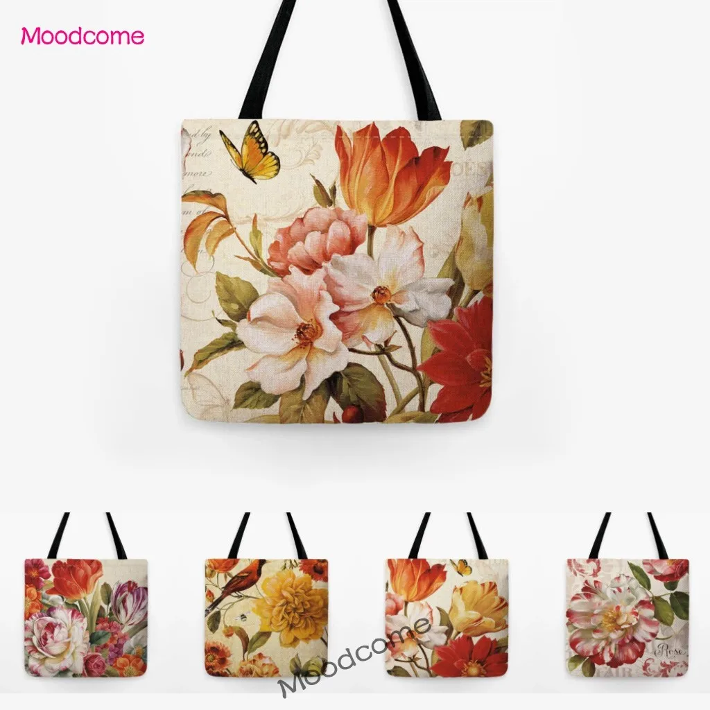Большая водонепроницаемая сумка-тоут из хлопка и льна в стиле ретро с изображением цветов, птиц, бабочек и маслом для покупок, большая сумка на плечо с цветочным принтом