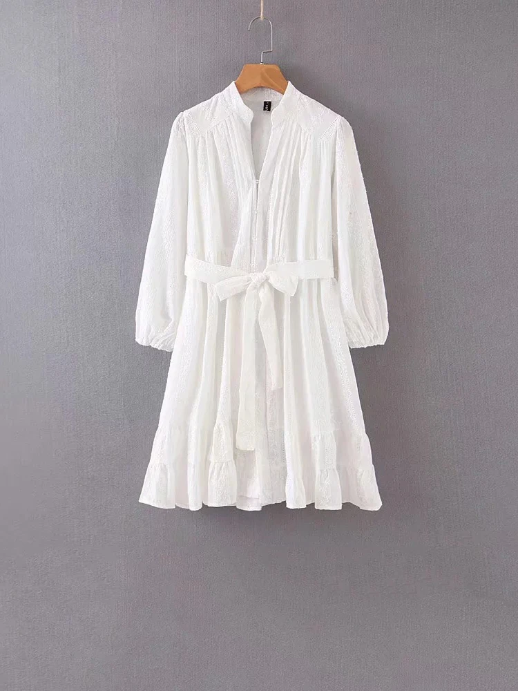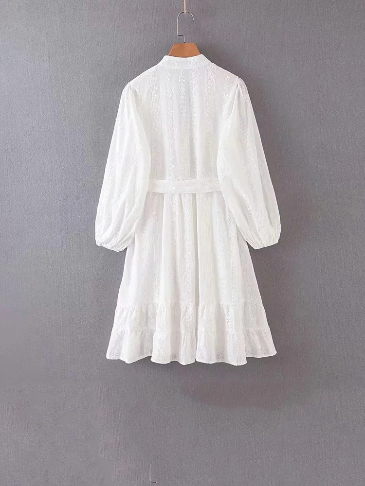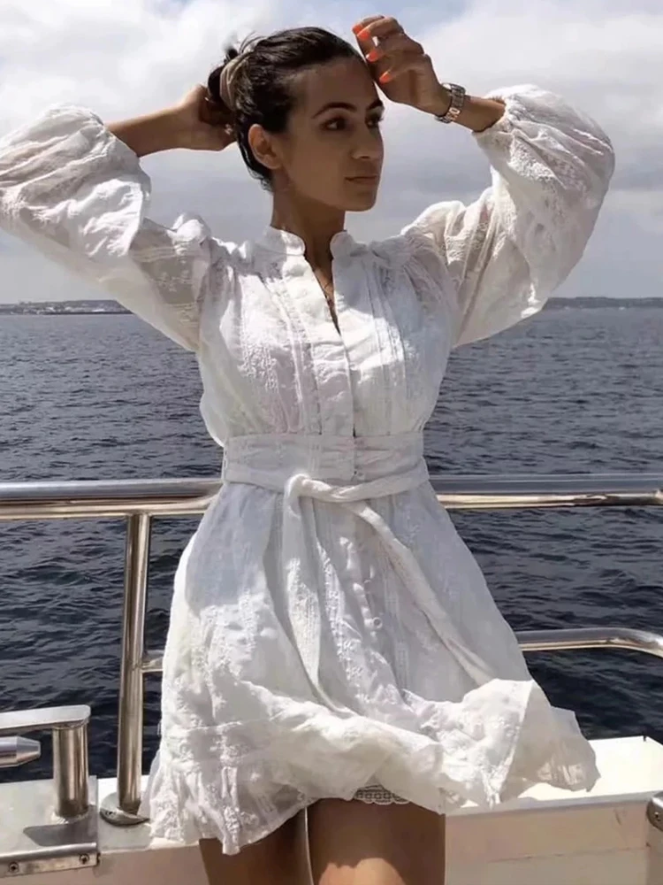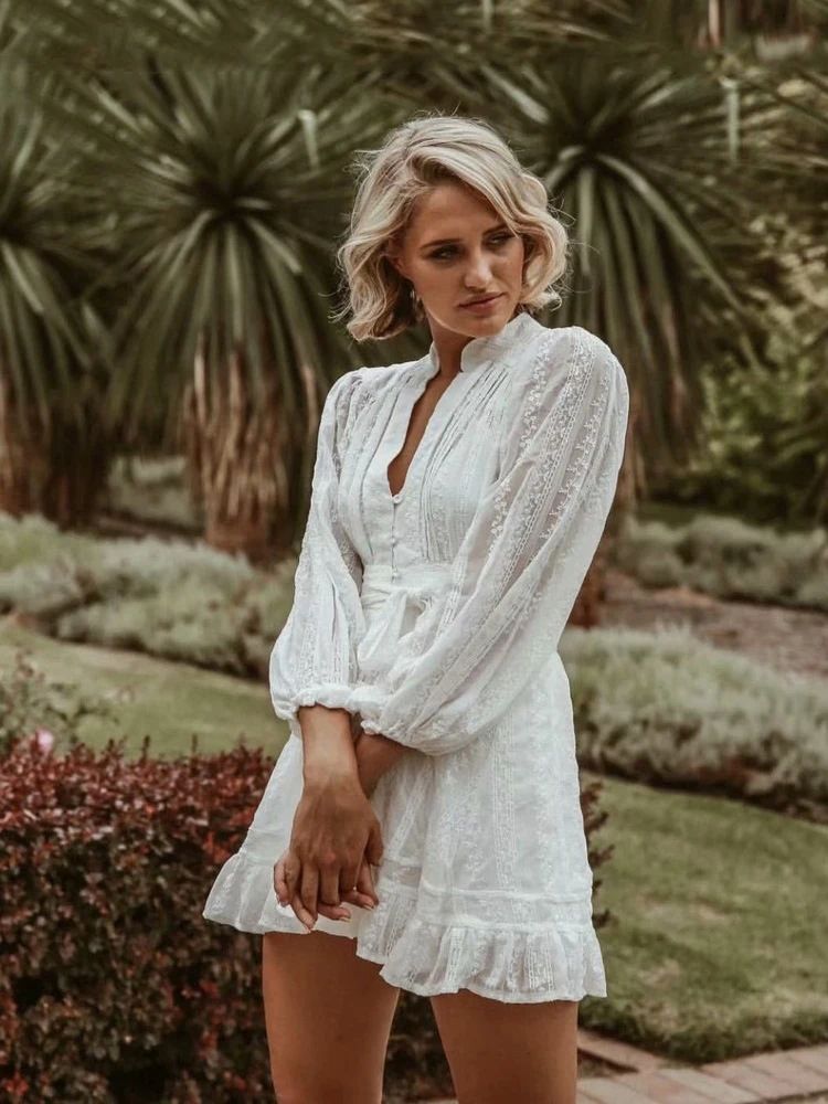 Платье-рубашка в стиле бохо, белое кружевное мини-сарафан с вышивкой и длинным рукавом, в богемном стиле, в стиле хиппи