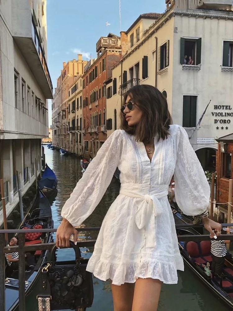 Богемное платье-рубашка в стиле бохо, белое кружевное платье с вышивкой и длинными рукавами, мини-сарафан в богемном стиле, хиппи, шик, Vestidos