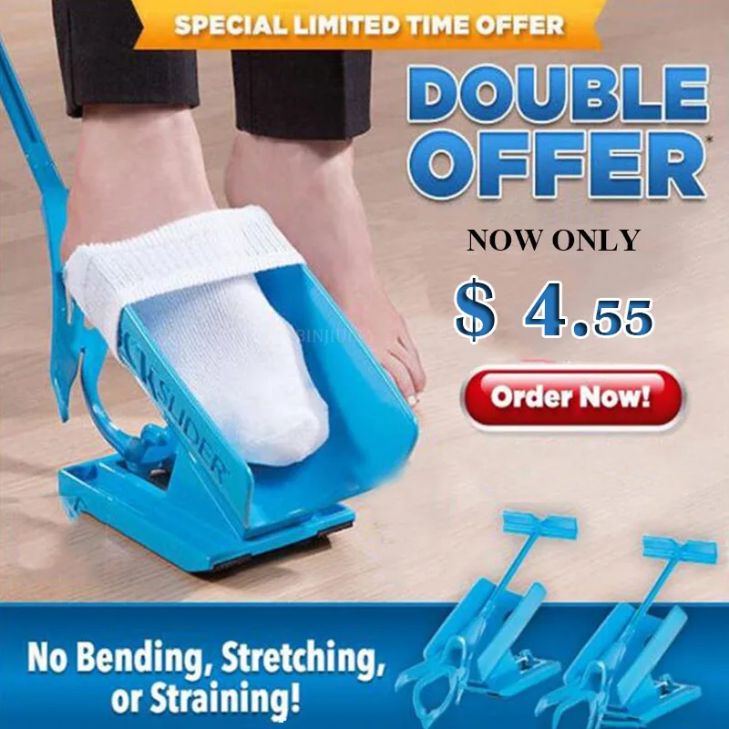 Особенности: 1. Не сгибается. 2. Два устройства позволяют легко надевать и снимать носки. 3. Один простой шаг, и они включены, одно быстрое движение, и они выключены. 4. Надевайте носки и снимайте их быстро и легко-не сгибайте, не растягивайте и не скручивайте. Идеально подходит для людей с артритом или проблемами с мобильностью. 5. Даже без использования обеих рук, этот продукт вернет простоту носки. 6. Легкий носок используется для отжима носка, и с помощью ваших ног, Вы Можете наклонить его, чтобы положить носок в пределах досягаемости. Его можно использовать, чтобы снять светильник и компрессионную одежду.