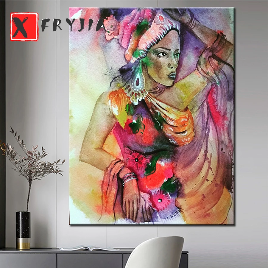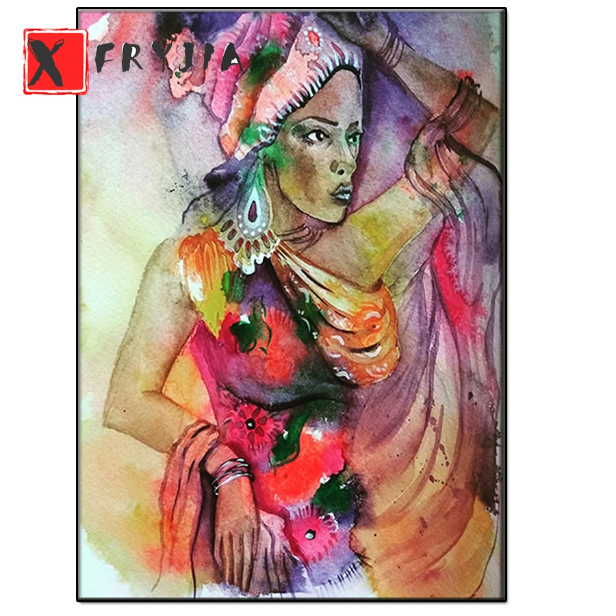Алмазов картина 5D круглый квадратный алмаз Африке акварель Женщина вышивка мозаика Алмазный портрет девушки настенная живопись Декор
