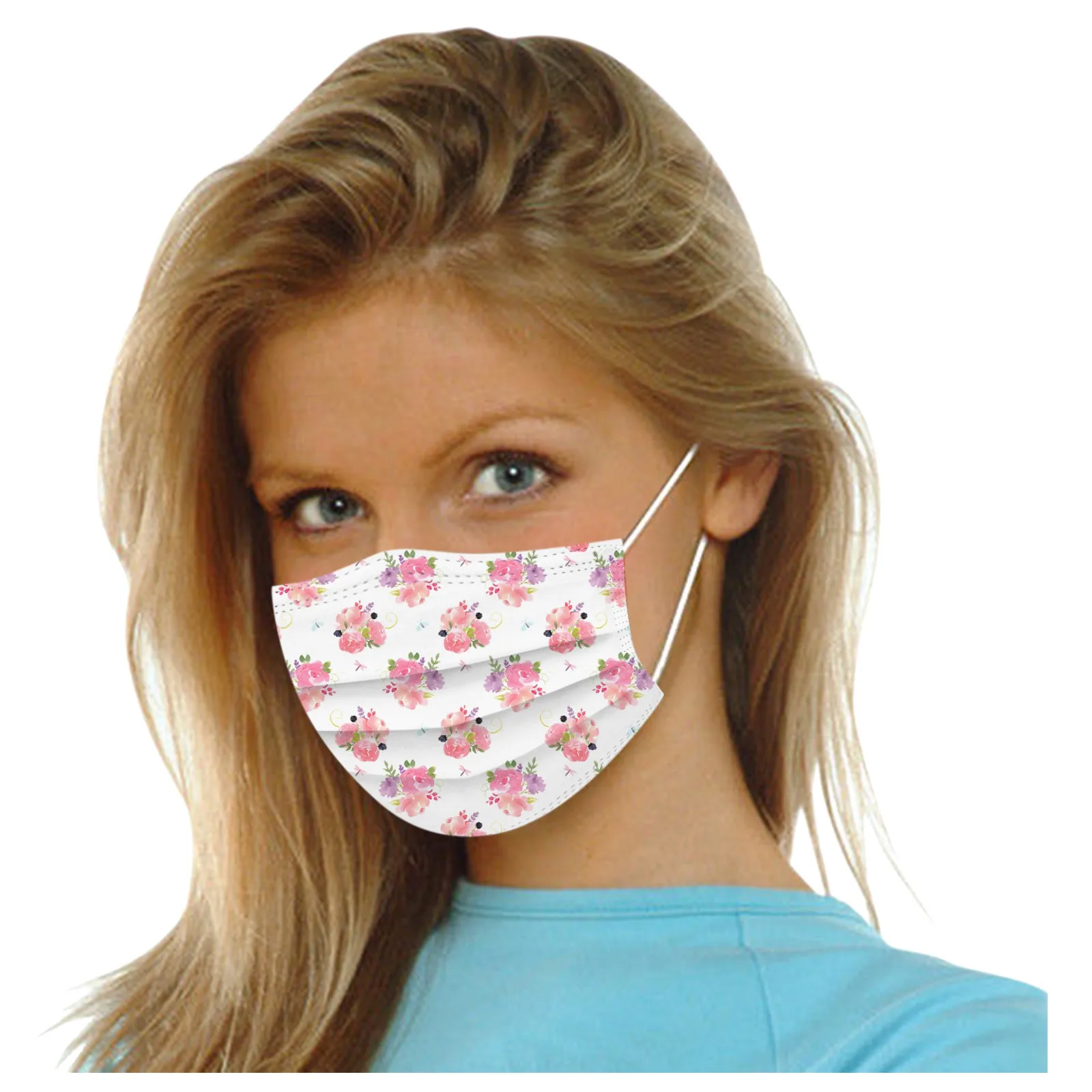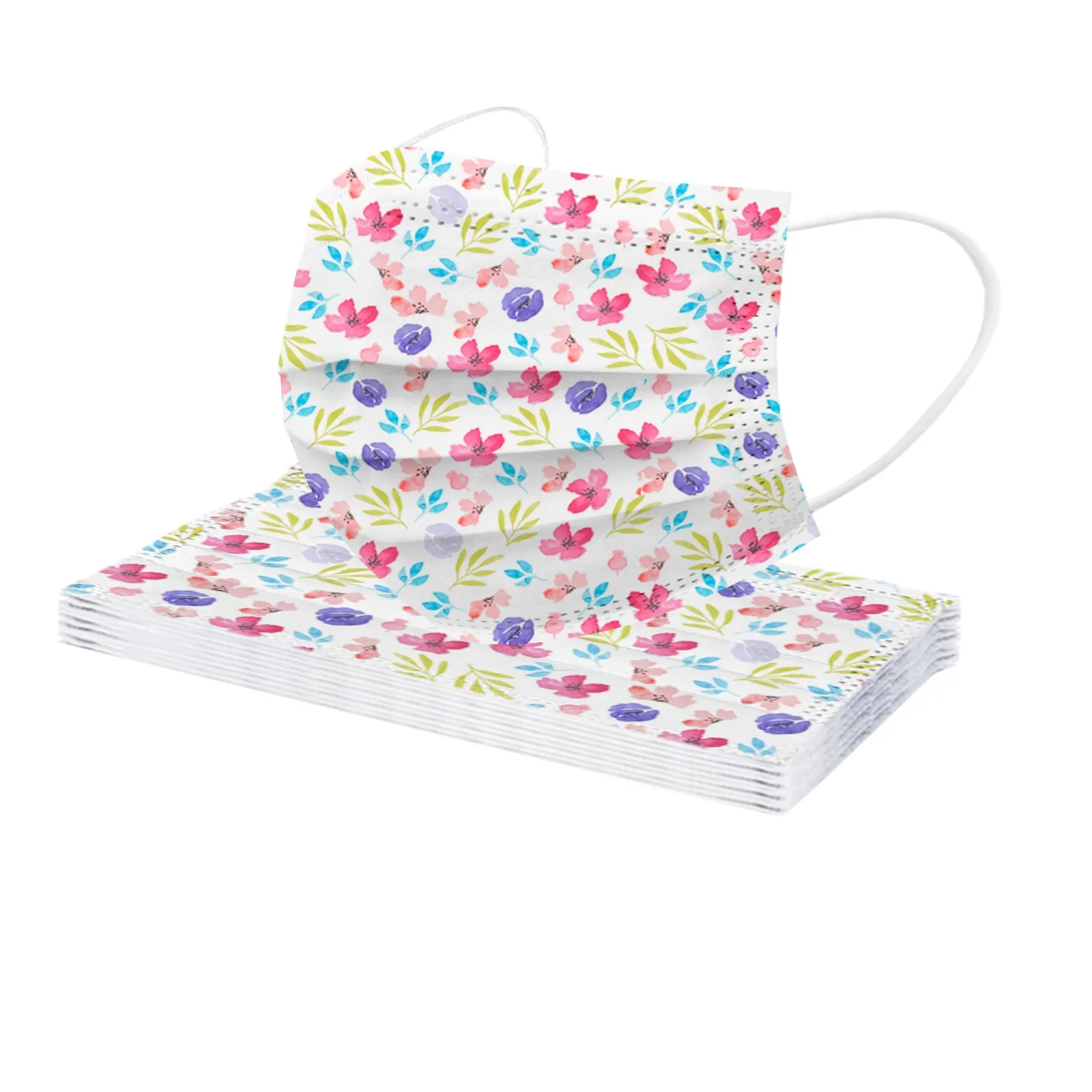 Маска одноразовая для взрослых, дышащая, с цветным цветочным принтом, 3 слоя, 10-50 шт.