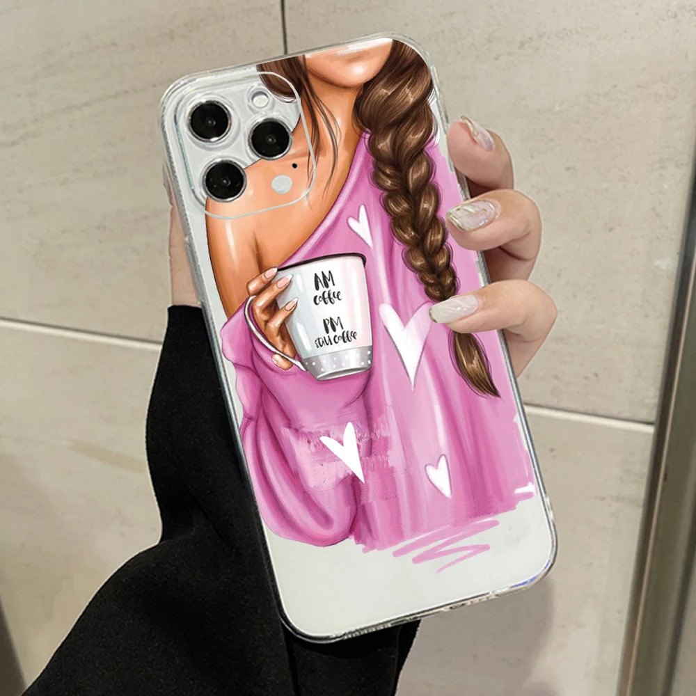 Модный прозрачный мягкий чехол кофейной девушки для телефона iPhone 11 Pro MAX XS XR 12 pro 7 8 plus SE 2020 6S 13 милый мягкий женский чехол