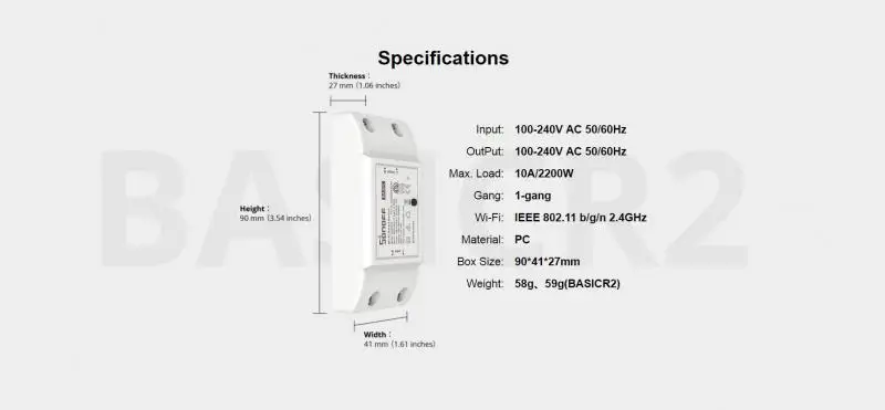 Смарт-выключатель SONOFF BasicR2 с поддержкой Wi-Fi и поддержкой Wi-Fi