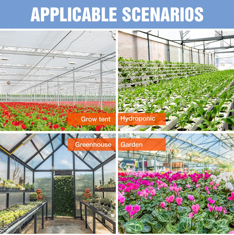 Подходит для всех комнатных условий выращивания: палатка для выращивания, комната для выращивания, лучший рост и цветение сцены. Популярны в гидропонике, теплице, садоводстве в помещении, выращивании трубопроводов, растениях в горшке и других комнатных условиях.