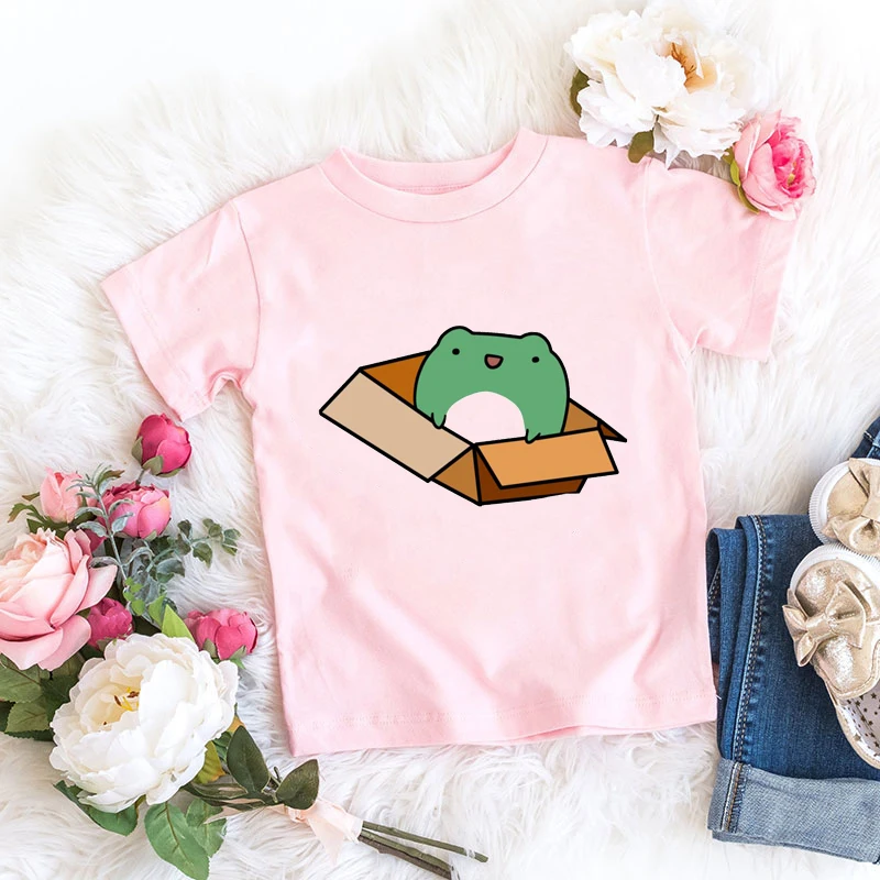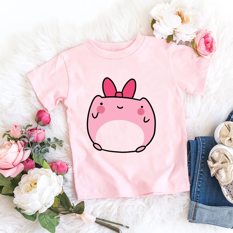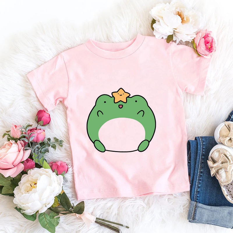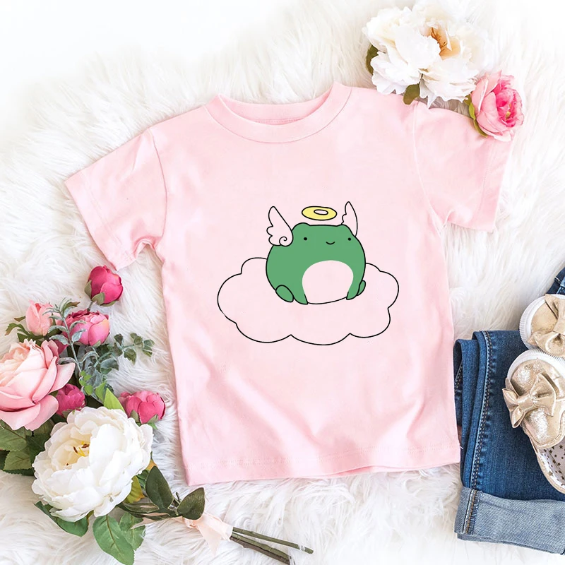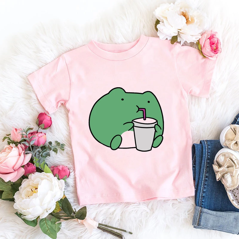 Детская футболка, милая розовая футболка с мультяшным принтом фруктов, лягушек, Милая футболка для девочек с графическим рисунком, одежда для дня рождения, летняя одежда для девочек, топы