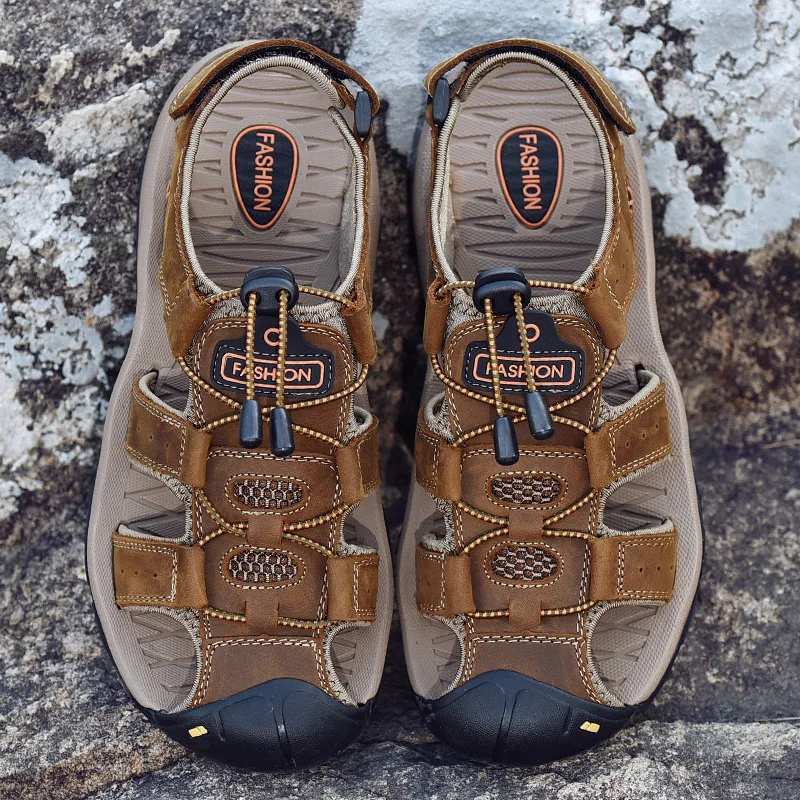 Мужские сандалии из натуральной кожи, Нескользящие уличные спортивн...