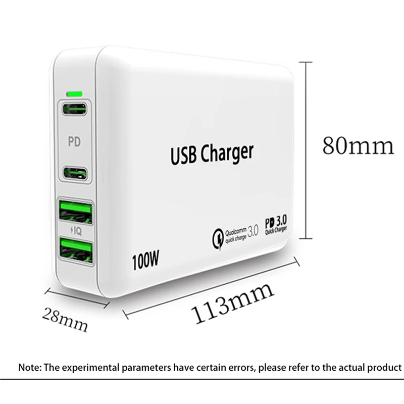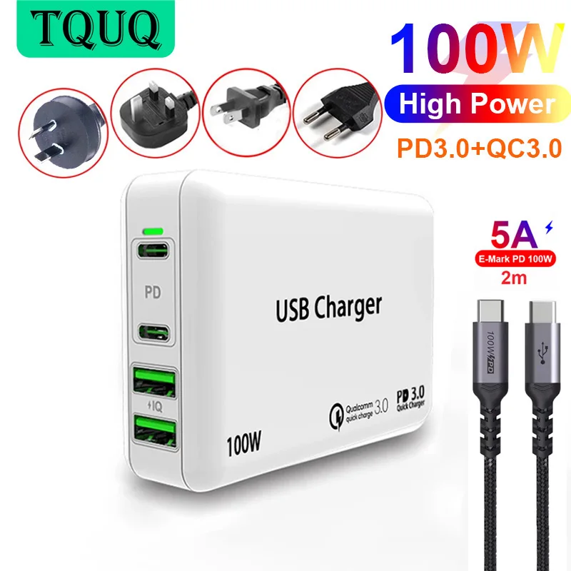 Зарядное устройство TQUQ USB C, 100 Вт, 4 порта для быстрой зарядки, 2 порта USB C, 2 порта USB A, зарядное устройство Type C для MacBook Pro,iPad Pro